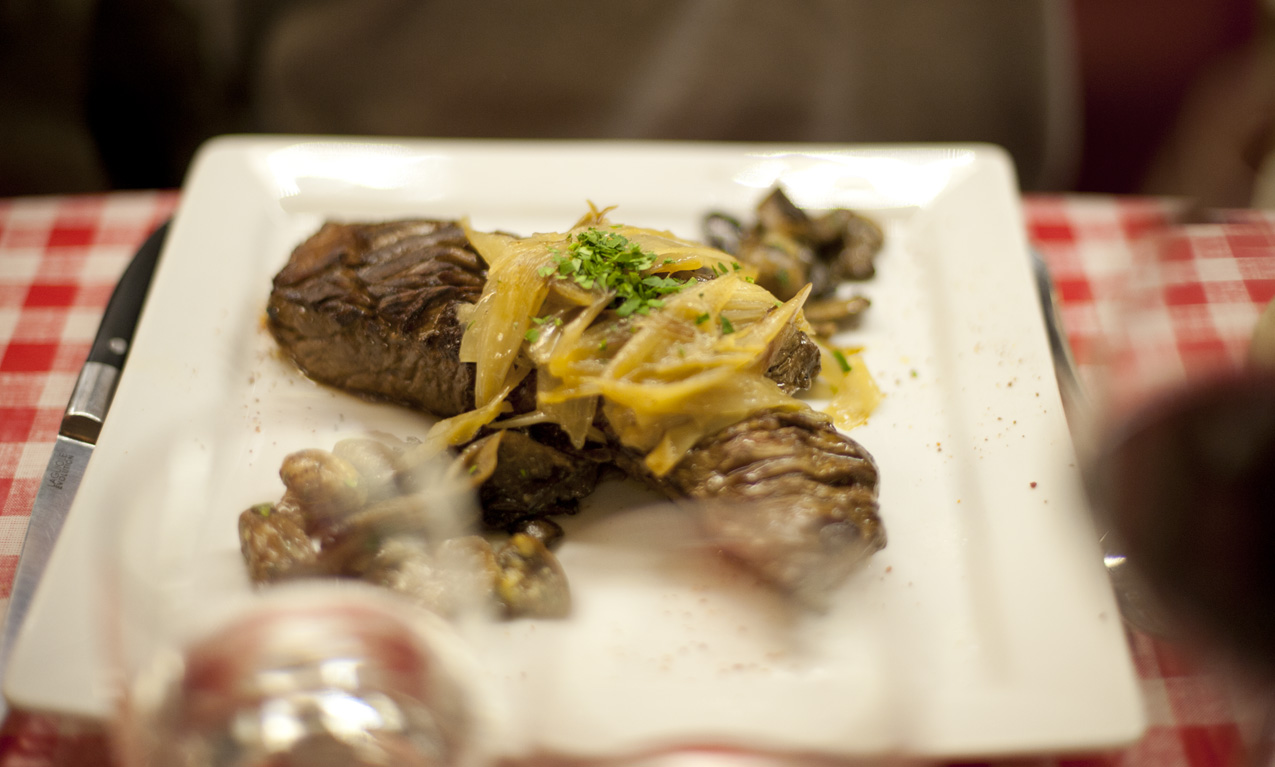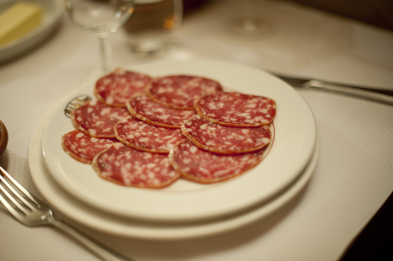 I hate to use superlatives, but this was probably the best cheese that I’ve ever had in my life. As he dropped of this huge wheel for us to take what we wanted, proprietor said that he had to drive fifty kilometers to get it from a small village in the country get it, and that it could not be found anywhere else. Unfortunately, since we had stuffed ourselves with the previous courses, we could only eat a sliver of it. If I ever go back, I will definitely be getting this again.