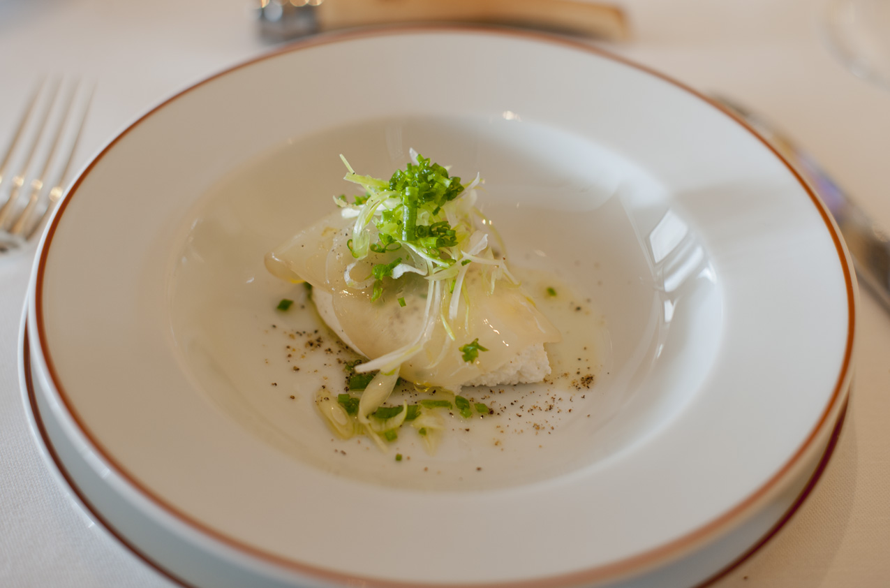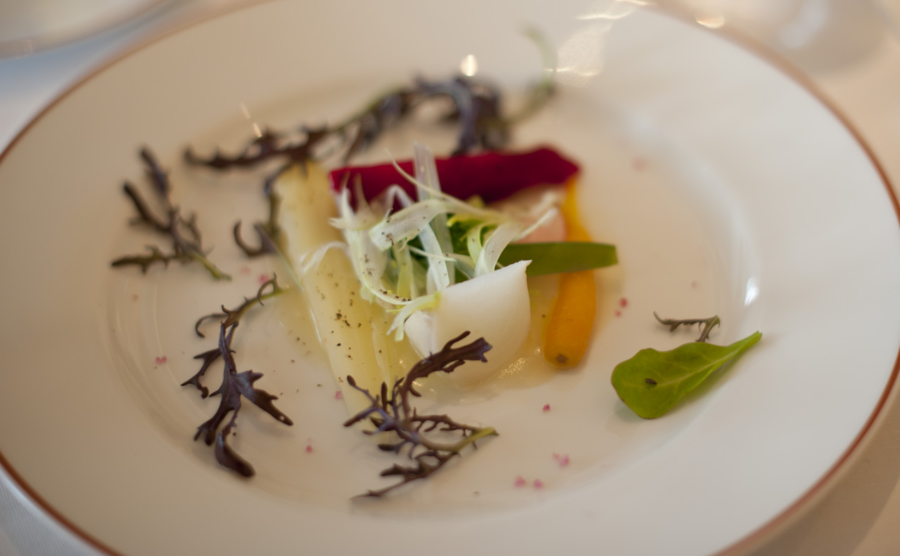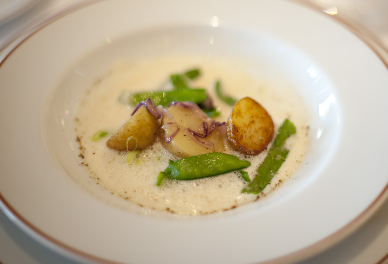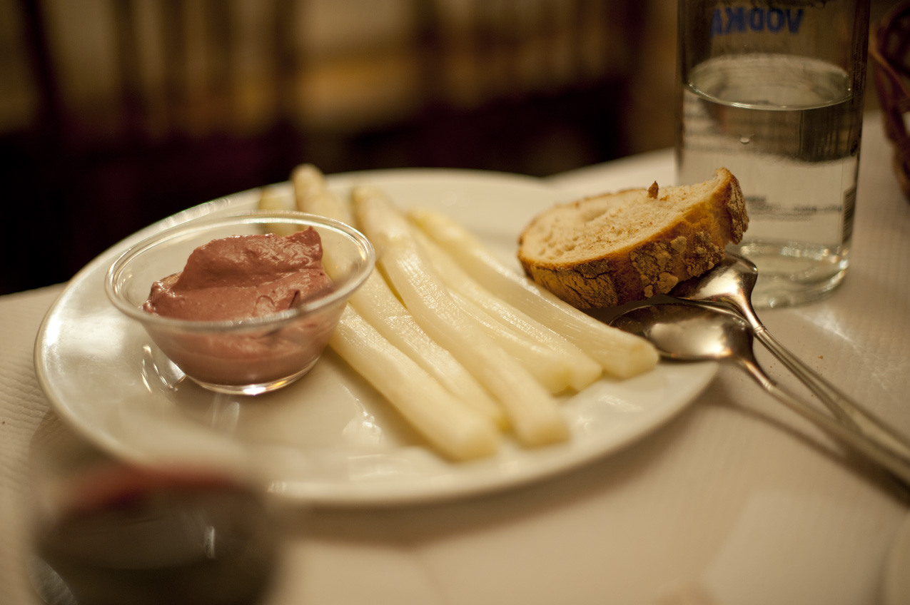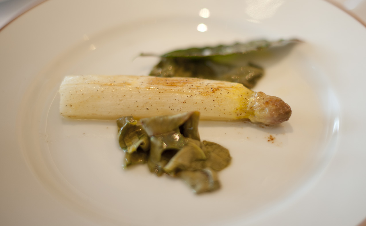 Next, we had white asparagus with a flavorful red wine and mustard mousse, which is something we’d like to attempt at home.