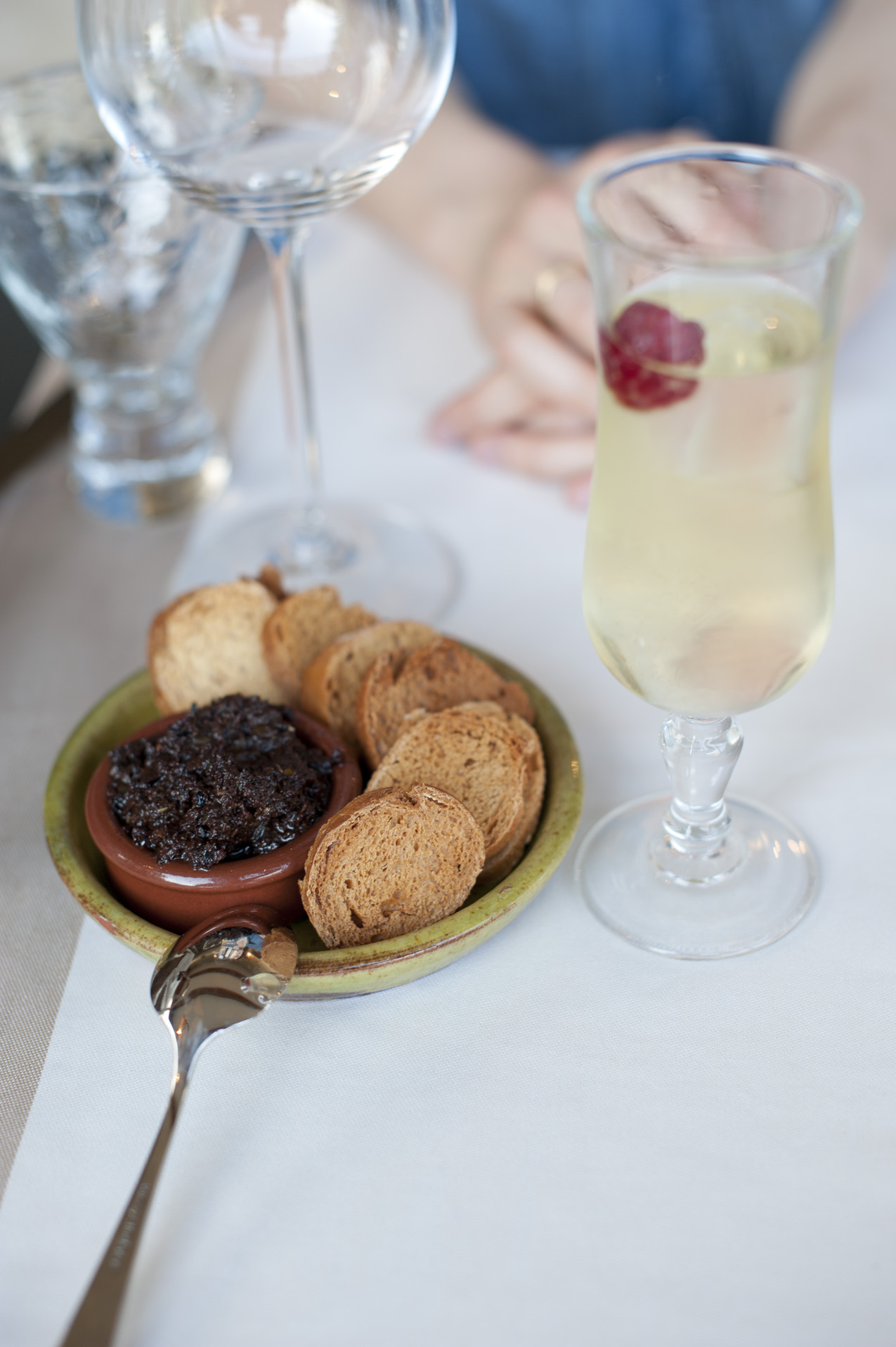 Elizabeth ordered sausage for her first course, and this is not exactly what she was expecting. It was tasty, though, and the bread that was put on the table was delicious, too.