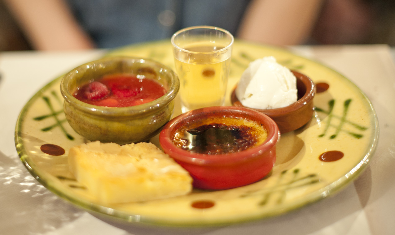 After completely stuffing myself on previous courses, I went with sorbet for dessert. when the waiter brought it out, he drizzled brandy all over it, and left the bottle for a digestif.