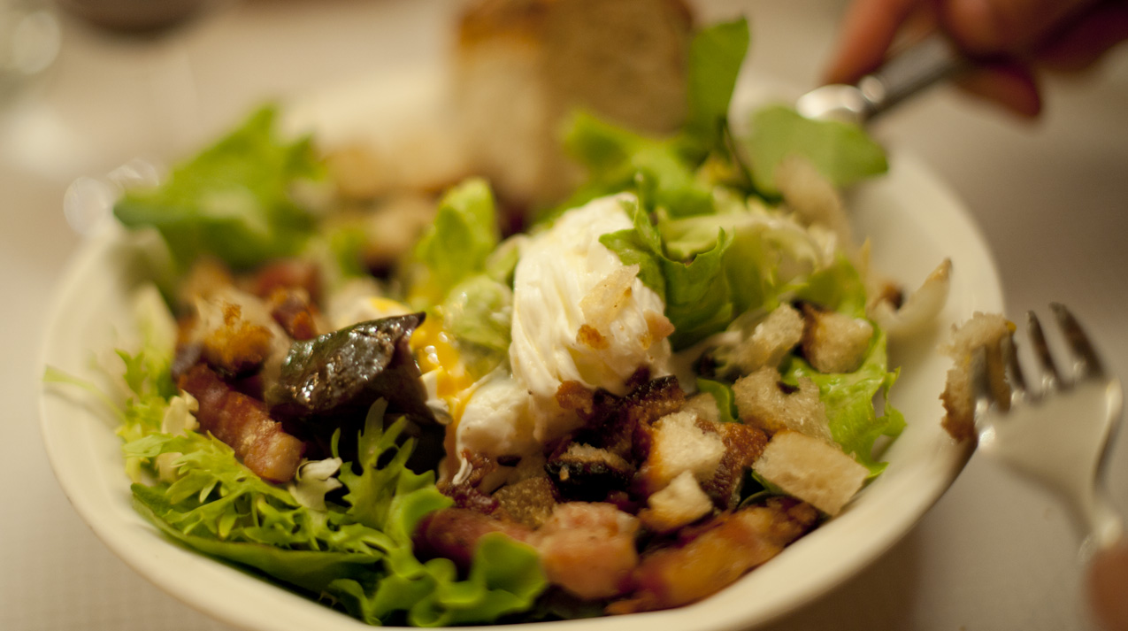 I ordered a lentil dish with assorted meat parts for my first course. I was a little taken aback when the waiter brought over this giant tray of food with a pot of lentils in the middle. I assumed that I was to take the items family-style, so I took a big spoonful of each. I was told that the meat parts included nose, foot, ear, and stomach (I think. I can’t actually remember exactly what each one was.). Surprisingly (or maybe not, since Lyonnaise bouchon food is legendary for a reason), everything was delicious. Once I got past the names of the parts, I enjoyed everything there. They were flavored very delicately with citrus and spices. I took way to much for my first course, though.