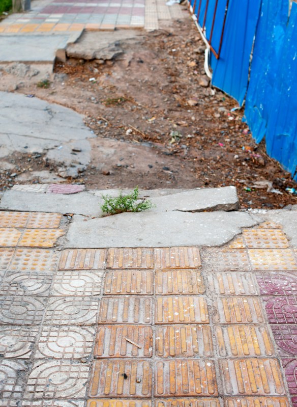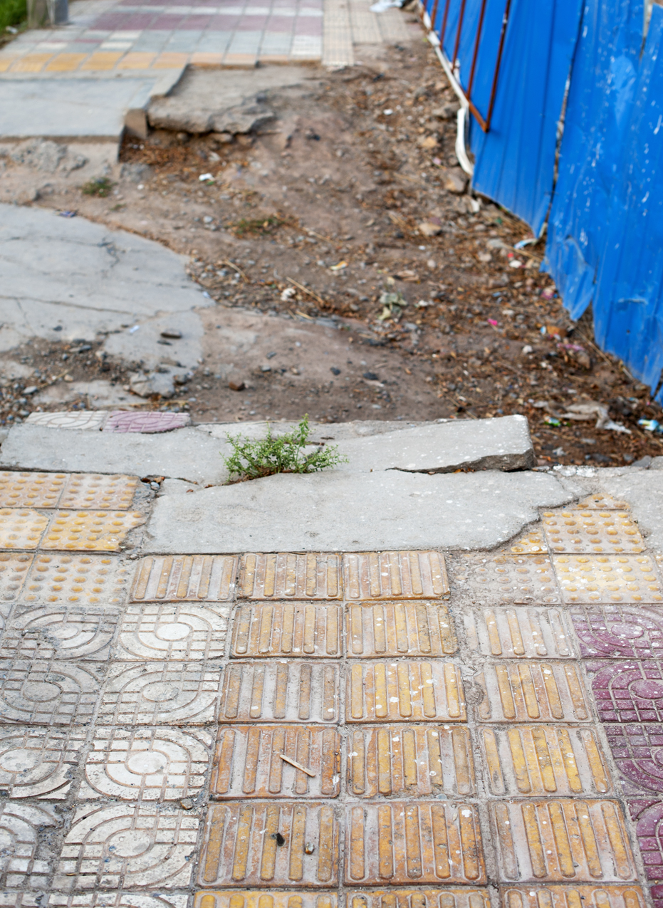 This one gets me. China has been following Japan's lead, and putting in all of these special sidewalk pavers for the vision-impared. They seem pretty useless, however, if they lead the blind off a cliff.