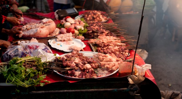 Last night, I also took a stroll to the night market in town.  Because China is all in one time zone, it doesn’t really get dark here until 11:30.  In a show of defiance, the locals operate on their own time, two hours later, but all of the banks, buses, trains, planes, and government offices run on Beijing Time.