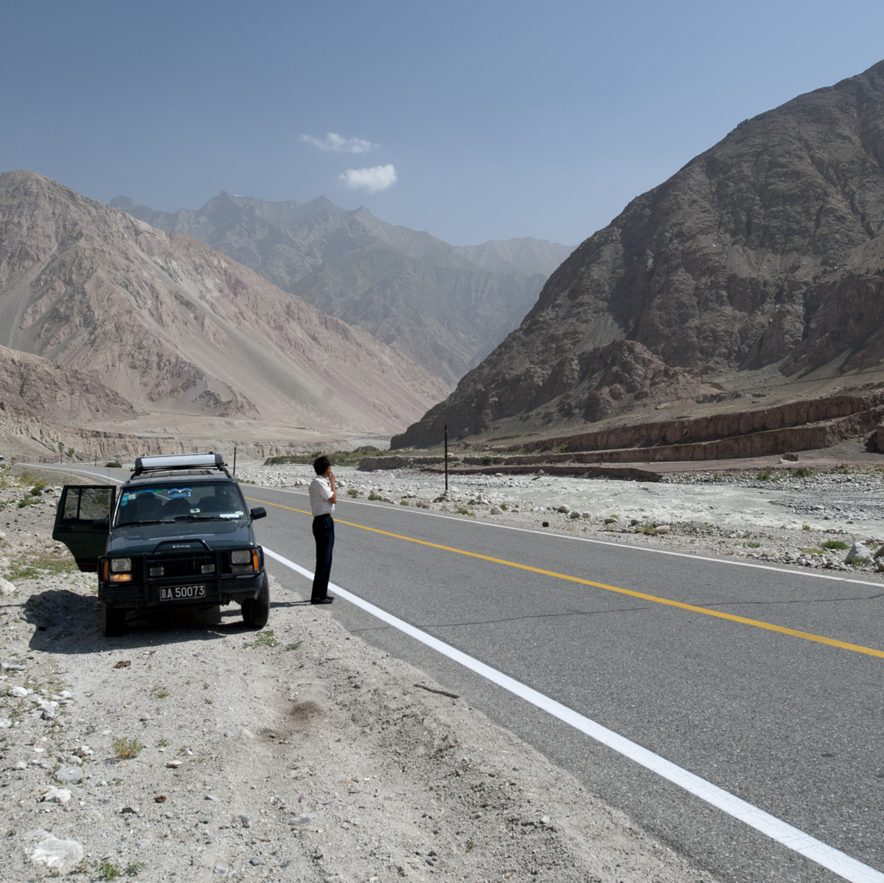 Our driver takes a break for a smoke during a photo stop. We would take full advantage of the 4-wheel drive that his jeep provided. The pavement simply ended in parts, and gave way to miles of unpaved bumpy roads.