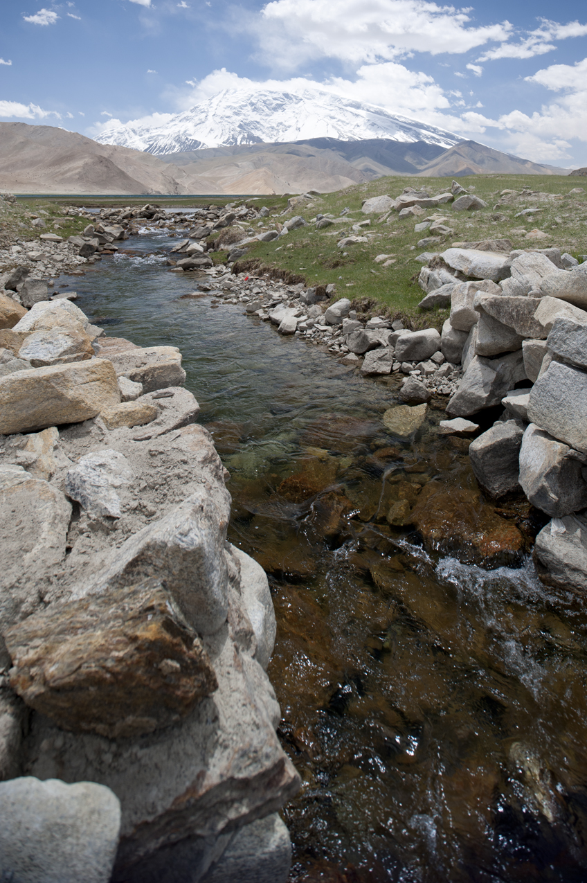 There were tiny fish in this stream, which snakes down from the lake towards the valley through which we had travelled.