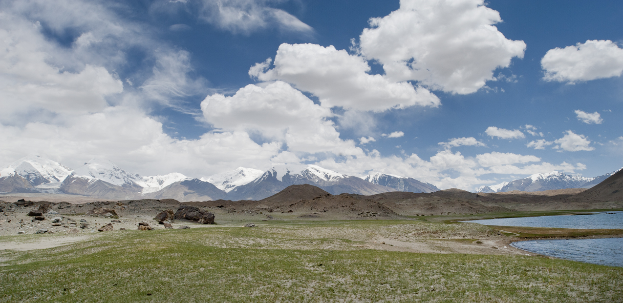 The mighty Pamir mountains are located to the east of the lake. They are formed at the junction of the Himalayas, Tian Shan, Karakoram, Kunlun, and Hindu Kush ranges.