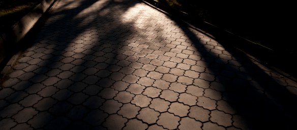 The summer sun traces long shadows in the countless parks in the evening.