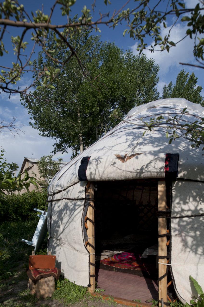 My first yurt: a hut set up in someone's back yard in Kochkor. Surprisingly, I slept very well here.