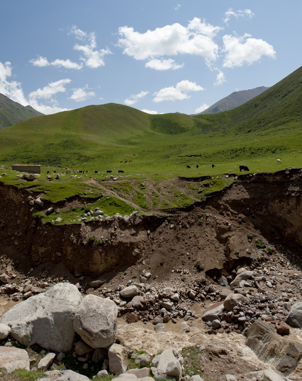 An incredibly hospitable Kyrgyz shepherd invited us into his hut (a seasonal concrete yurt) for tea, but he insisted that we eat and sleep there, too. It was getting cold and windy out, the tea was warm, and the thought of spending the night there was looking pretty good, but we forced ourselves to make it back to our waiting Jeep for the long trip down the mountains after just one cup of tea.