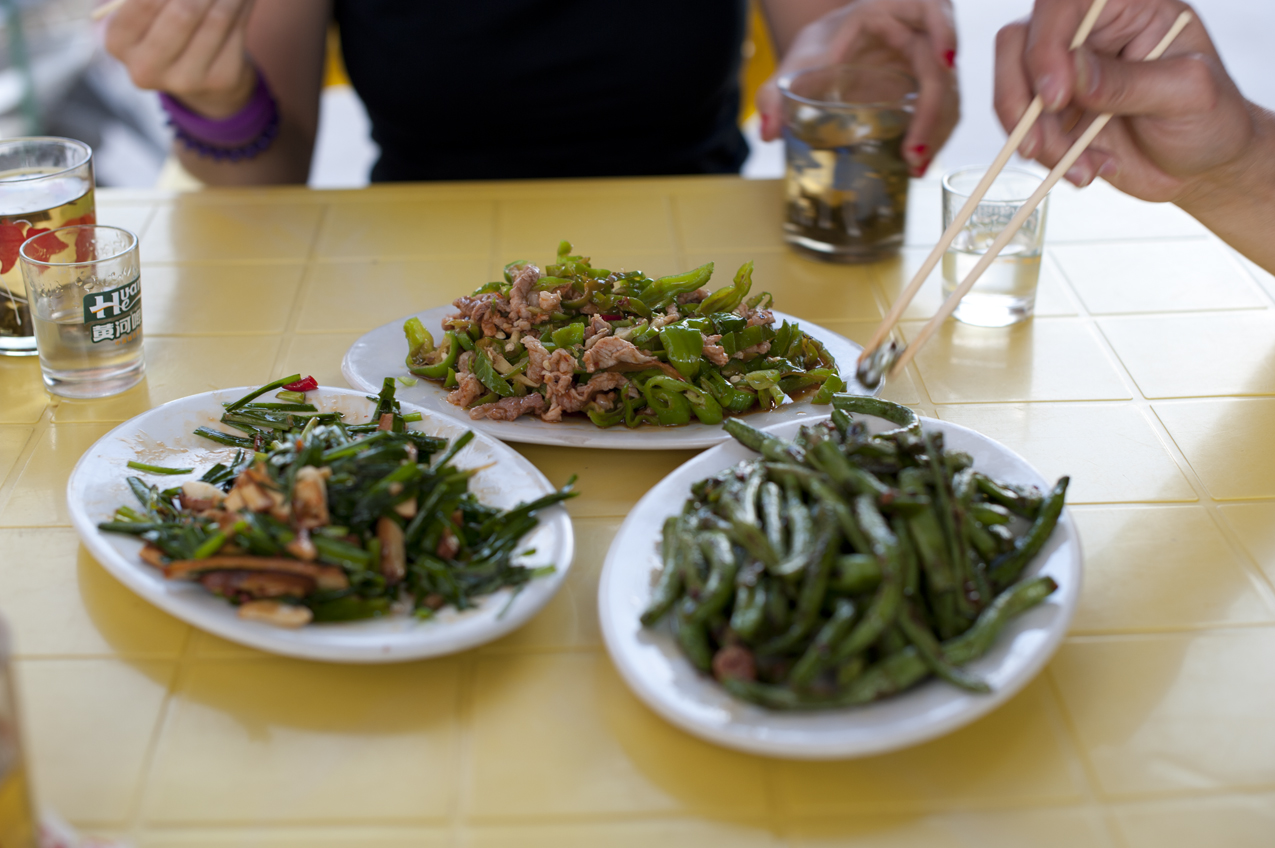 A feast with some new friends from the states, both of whom spoke Mandarin. This time, I actually knew what I was eating: tofu with scallions, spicy green beans, and chicken with hot peppers. It was delicious, and it was nice to swap some stories with fellow travelers.