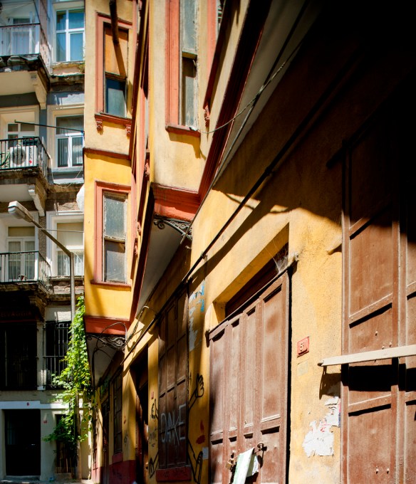 After lunch, I crossed over to the other side of the Golden Horn to check out what was traditionally the more diverse part of Istanbul. I encountered this condition a lot today: The upper floors are cantileverd over the street to bring in more light. in this case, they are canted at an angle so that the apartments deeper in the block can still get some light and views. This usually works well, until everyone of the block decides to take up the air space over the street, and the buildings on either side almost touch at the top.