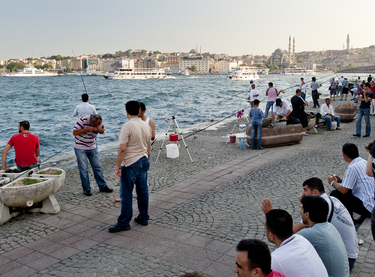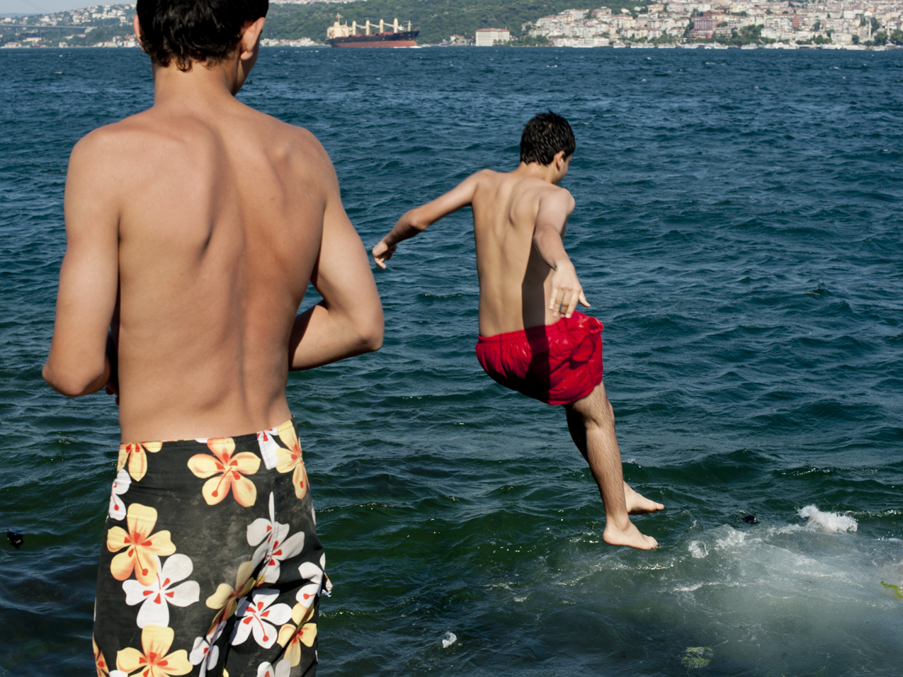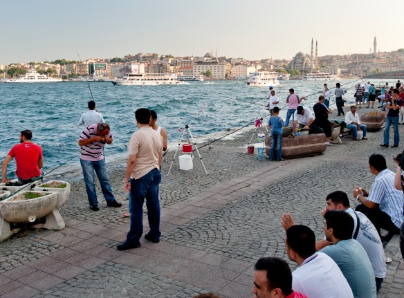 Evidently, local kids like to swim in the Bosphorus, although they have to dodge the fishing hooks of the countless anglers who line up on the shores.