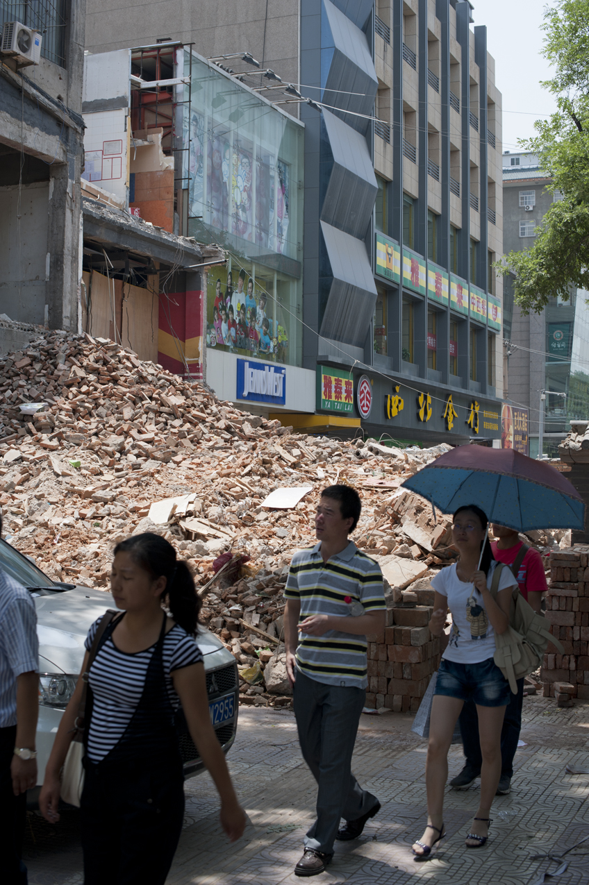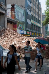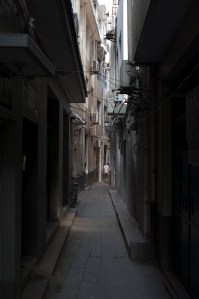 I made my way through the underground tunnel to the Bell Tower, and paid the 40 RMB admission price for both towers. The entrance was located past an alley of souvenir shops. I ascended to the top, stopping to walk around, and take in the view from each level. The tower felt much like an island, with traffic whizzing by all around, and with bright shopping complexes surrounding the circle. The towers seem divorced of their surroundings, their sole purpose now as fetish objects for tourists. The descriptive placards emphasize how important the towers are to cultural history, even saying “these are very important to Chinese cultural history.” The Chinese tourist read the signs and have their pictures taken in front of them as a way of saying that they’ve been to this historic landmark. In a country in which traditional culture was forcibly expunged over a period of forty years, the locals seem to approach the landmarks with the same distance as the foreigners.